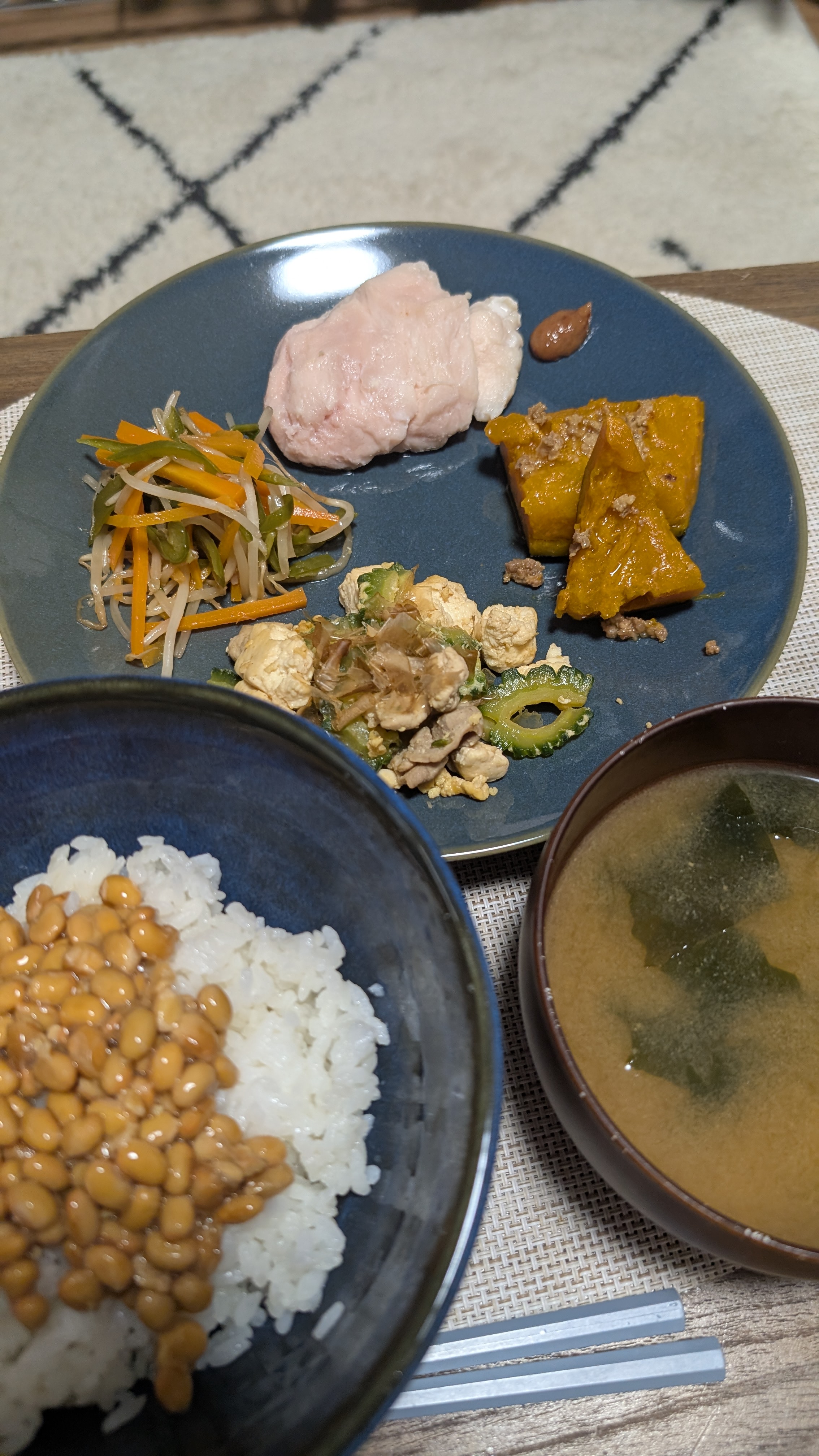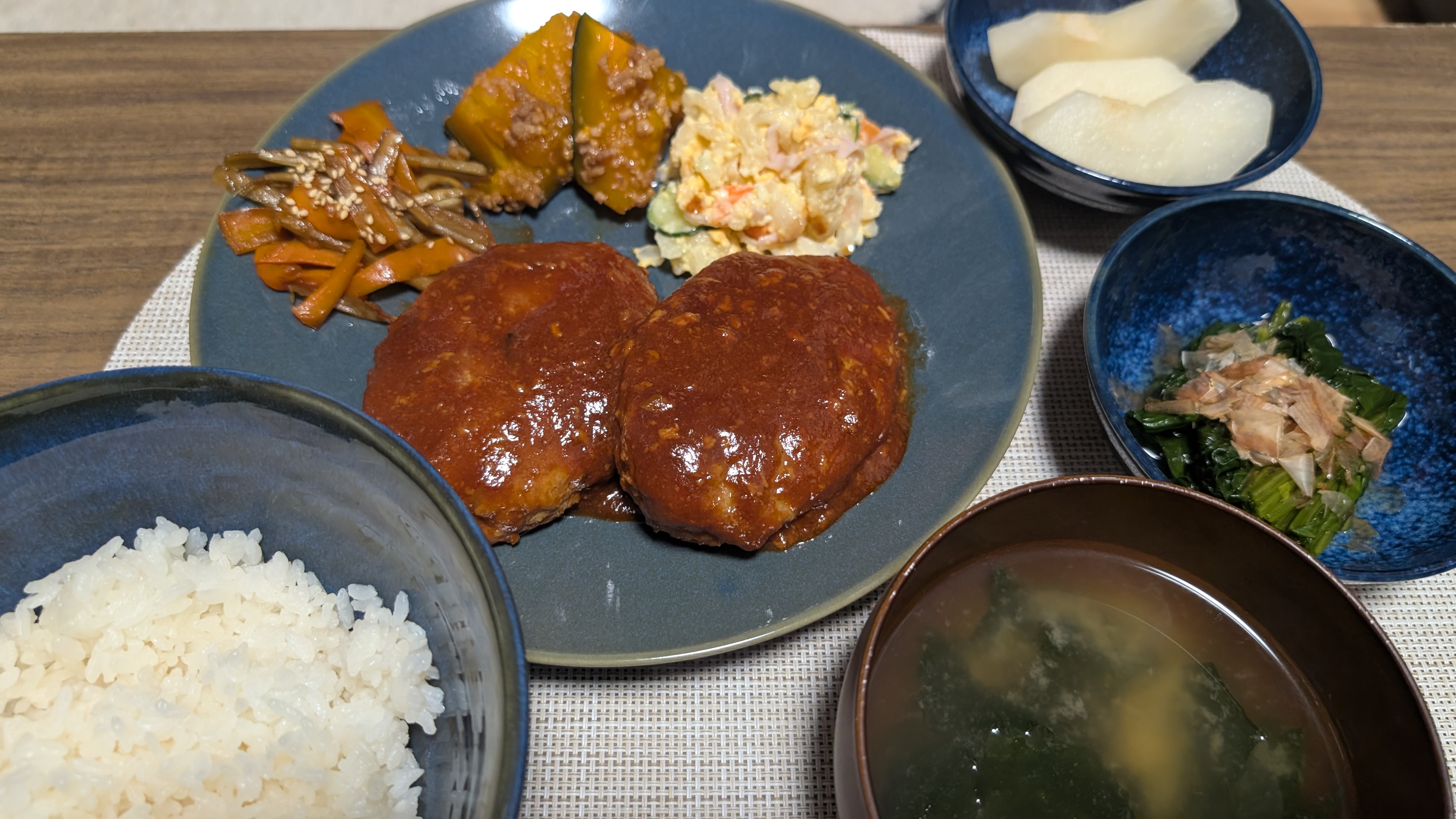 きんぴらごぼうや切り干し大根、ポテトサラダ、かぼちゃの煮付です。
